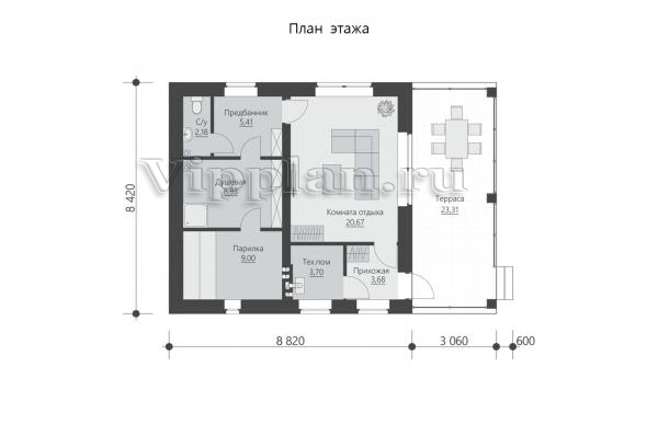 | Размеры дома: | 8.42м×11.88м |