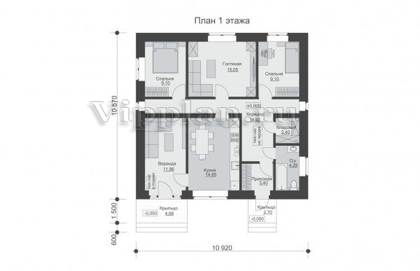 | Размеры дома: | 12.07м×10.92м |